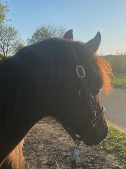 Sie ist artig im Umgang und unterm Reiter, kann draußen auch flott werden, war bisher aber immer gut kontrollierbar.