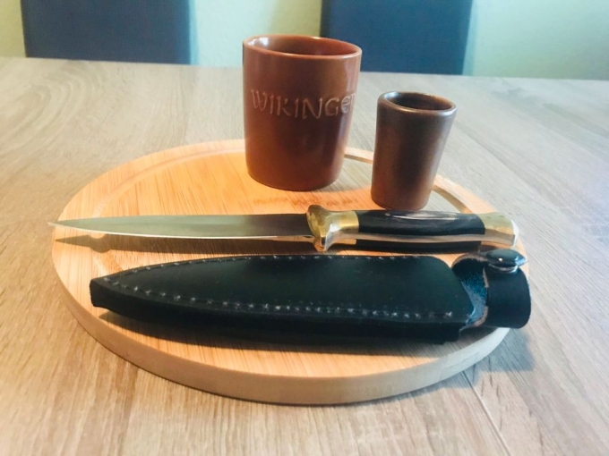 Rittermahl Gedeck Trinkbecher Dolch Vesperbrett
