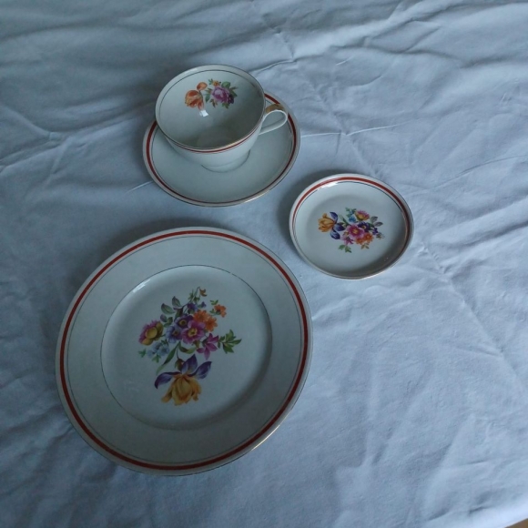 Wir haben aussortiert und verkaufen diese Sammeltasse + Unterteller + telller gebrauchter Zustand