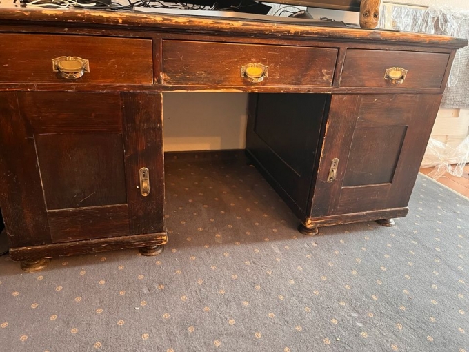 Alter Schreibtisch mit tiefen Fächern und Schubladen