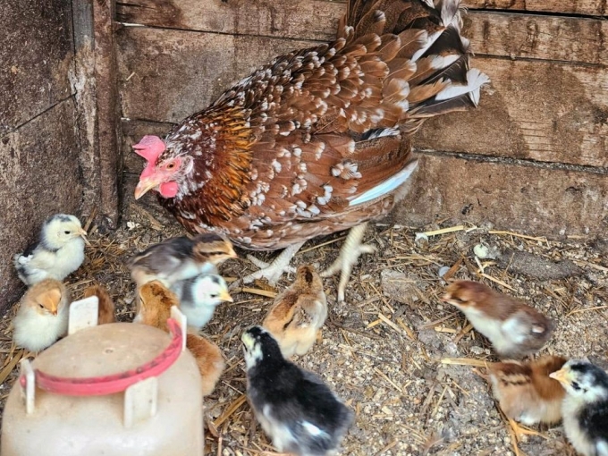 Zum Verkauf stehen mehrere Glucken mit Küken der Rasse Schwedische Blumenhühner. Es sind auch noch Küken ohne Glucke zu Verkaufen, von ein paar Tagen bis 4 Wochen, sind die ältesten. Die Küken auf dem Bild sind jetzt 3 Tage alt. Die Glucke kostet 25 Euro. Kükenpreis steigt pro Lebenswoche.