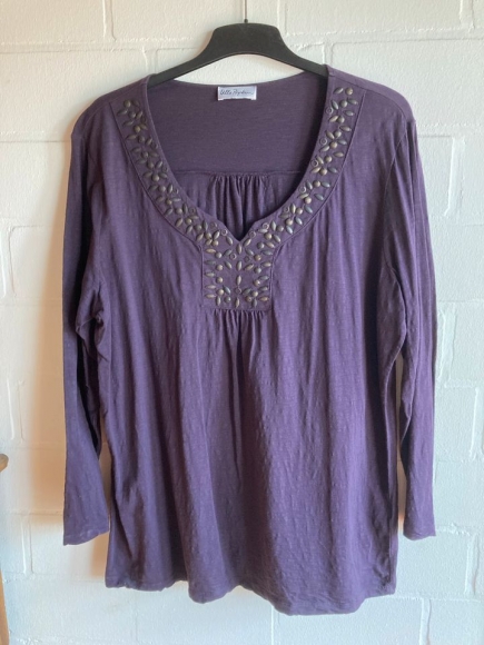 Farbe: ein dunkles Lila/Aubergine, etwas dunkler und dezenter als auf den Fotos