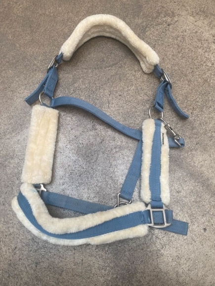 Verkaufe selten genutztes Halfter von Showmaster. Hat einen kleinen blauen Punkt am Nasenteil vom Blauspray. Es ist gr. WB.