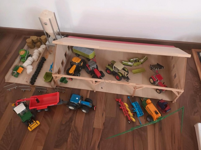 Siku Trecker 1:32 mit viel Zubehör und Scheune.