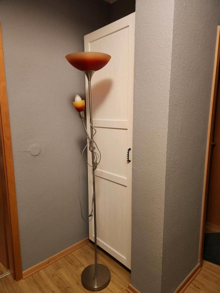 ich gebe meine Stehlampe ab, die rot-gelben Lampenschirme geben schönes warmes Licht ab. LED Birnen sind mit dabei.