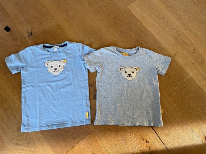 Steiff T-Shirt Bär quietscht, 104 grau und 110 blau
