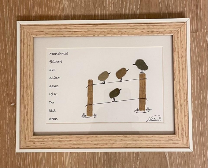 Verkaufe einen Bilderrahmen mit dekorativem Steinbild.