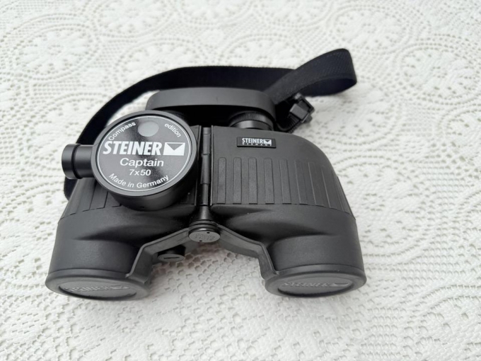 Verkaufe mein Original Steiner Marinefernglas Captain 7x50 mit beleuchtetem Peilkompass. Anleitung für den Peilkompass im Schutzdeckel. Das Glas wurde sehr wenig gebraucht und ist in sehr gutem Zustand. Objektivdurchmesser 50 mm, Sehfeld auf 1000 m = 123 m, mit Objektivschutzdeckel, Regenschutzdeckel, Tragriemen, Original Steiner Tragriemen und alles in gut gepolsteter Bereitschaftstasche.