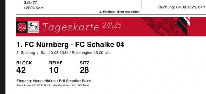 TAUSCH - Nürnberg Schalke Spiel 2x Sitzplätze