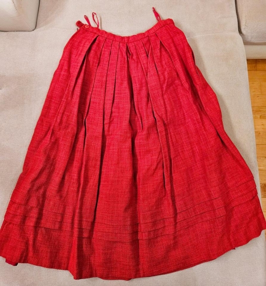 ich biete hier einen wunderschönen Trachtenrock in rot, mit eingenähtem Unterrock, der Marke Meico, an.