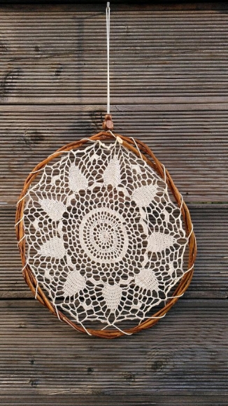 Traumfänger Wandbehang aus Weidenzweig und Spitzendeckchen