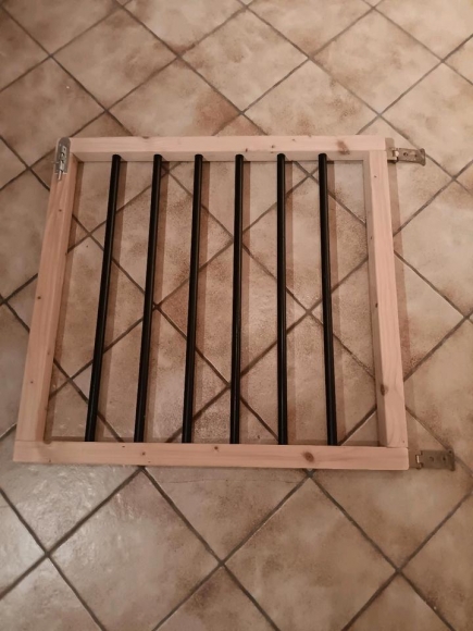 Die selbstgebaute Treppenschutztür ist für eine Wendeltreppe gebaut worden, da da keine Standard - Konstruktion funktioniert hat.