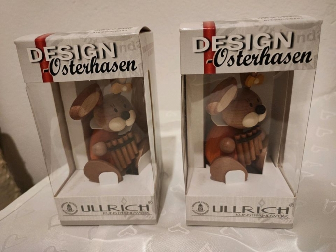 Biete zwei Osterhasen mit Panflöte von Ullrich in Oiginalverpackung an.