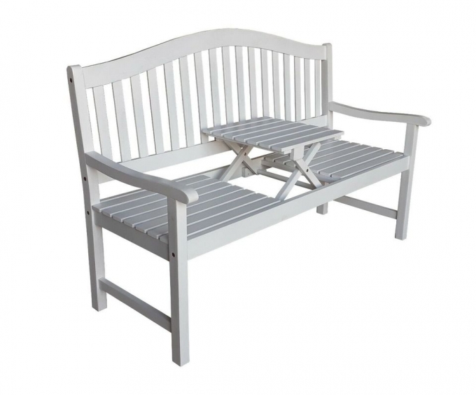 Die attraktive Gartenbank wird aus massivem Eukalyptusholz gefertigt. Eukalyptus gilt als besonders witterungsbeständig und eignet sich daher ideal zur Verarbeitung von Gartenmöbel. Das hochwertige Material und die hervorragende Verarbeitung, versprechen einen stabilen Aufbau sowie eine lange Nutzungsdauer. Als besonderes Extra ist ein ausklappbarer kleiner Tisch in der Sitzmitte integriert. Ferner ist die Sitzfläche für bis zu drei (3) Personen geeignet bzw. ausgelegt. Die formschöne Bank bietet zudem einen angenehmen Sitzkomfort.