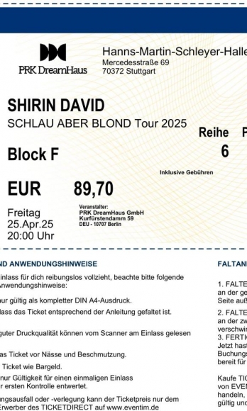 Ich verkaufe ein Sitzplatz Ticket für die Schlau aber Blond Tour in Stuttgart. Kann leider aus zeitlichen Gründen nicht hin, das wusste ich bei dem Kauf (Dezember) damals noch nicht.