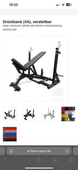 Zum Verkauf steht eine verstellbare Hantelbank von Flame Sport, die sowohl flach als auch in Schräglage (Incline) genutzt werden kann.