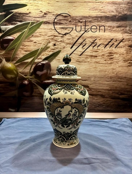 Villeroy & Boch Paon Deckelvase Höhe circa 31 cm leichte Beschädigung am Boden, siehe Bilder.