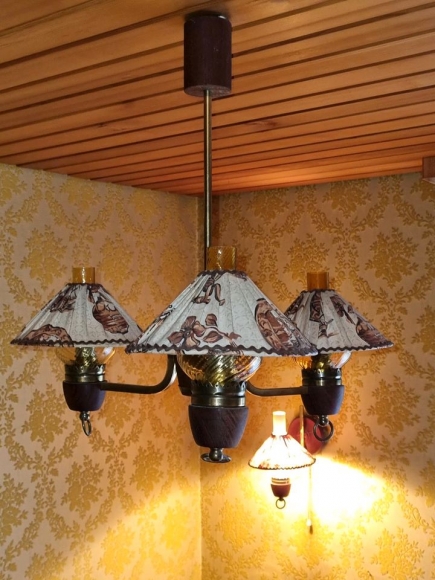 Vintage Hängelampe Lampe mit 3 Armen und Wandlampe mit Stoffschirmchen.