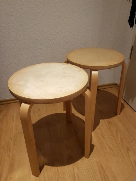 Ich verkaufe hier zwei vintage Sitzhocker "Frosta" von IKEA in einem sehr guten Zustand. Sie lassen sich aufeinander stapeln, bestehen aus Birkenholz, und wurden naturbelassen.
