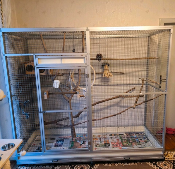2 Fressnäpfe sind dabei, falls interesse besteht kann ich auch die Äste und die spielzeuge dazu geben.