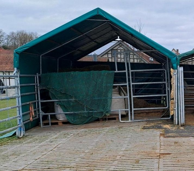 Dieses tolle Weidezelt (ohne Inhalt und Panel mit Tor) sucht neuen Standort. Abgabe nur wegen aufgabe der Pferdehaltung!