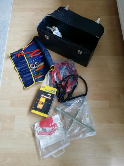 Werkzeug Koffer mit Zubehör, Abschleppseil, Überbrückungskabel