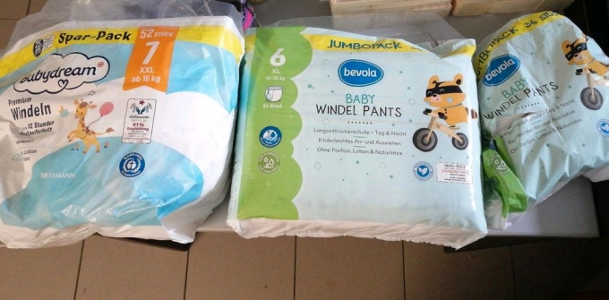 Windeln Gr. 7, 1/2 Paket in geöffneter Tüte