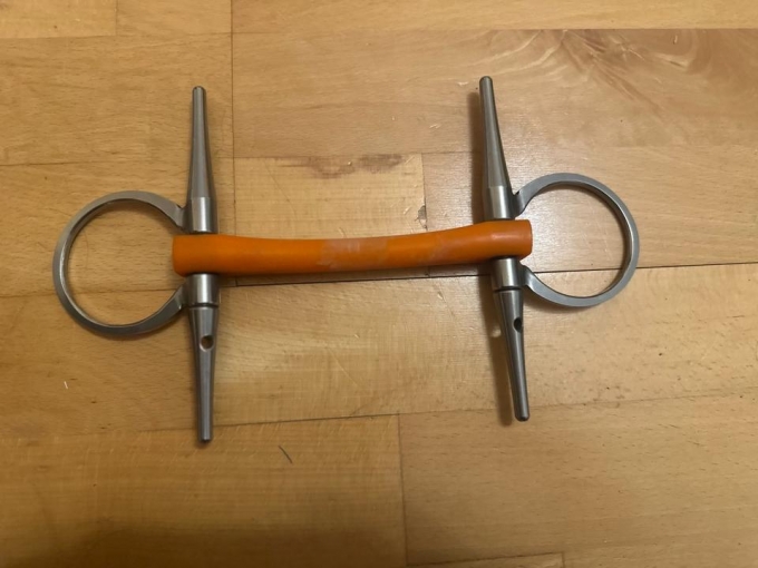 Winderen Stangengebiss Schenkeltrense in 13,5 mm abzugeben. Gut erhalten, nur leichte Verfärbungen am Gummi, ohne Beschädigungen.