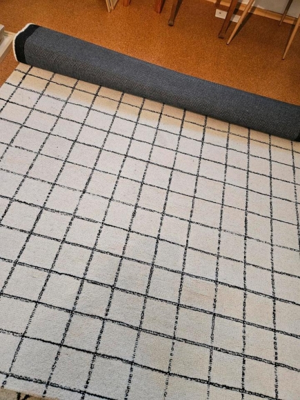 Wollteppich Grid Schwarz/Weiß, 160x230cm groß.