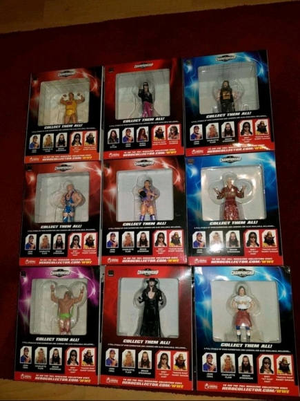 Angeboten wird hier ein Wrestling Figuren Konvolut der marke eaglemoss Hero Collector Championship collection der WWE Legenden .