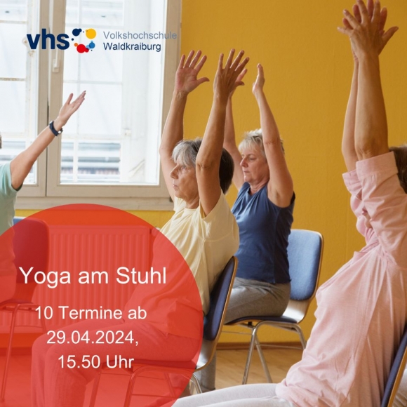Yogakurs für Anfänger: Yoga am Stuhl ab dem 29.04.2024, 10 Termine, Montag 15:50 bis 16:50 Uhr