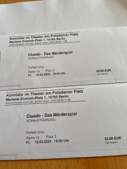 "Cluedo- Das Mörderspiel-" 2 Tickets für Freitag, 15.03. 19:30 h
