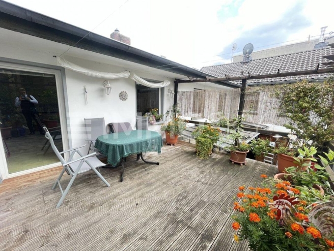 Die Einliegerwohnung im Hinterhaus beeindruckt mit Parkettboden, einem einladenden Wintergarten und einer gemütlichen Terrasse.