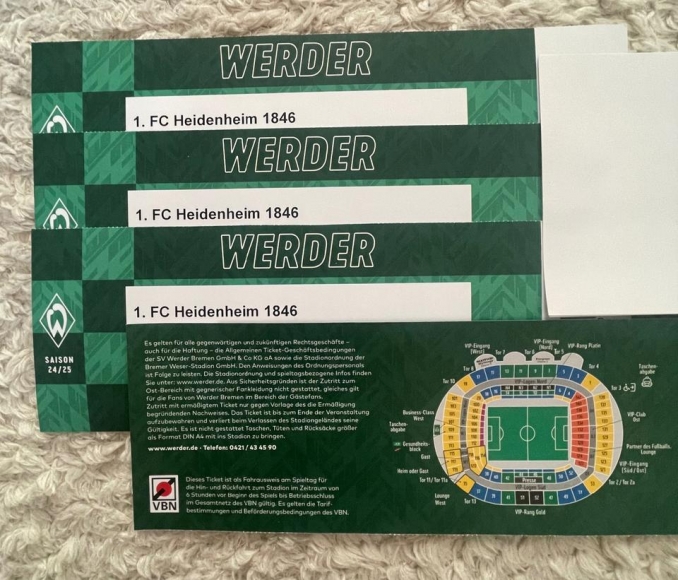 1-4 Werder Bremen-FC Heidenheim Tickets Karten SITZER WEST