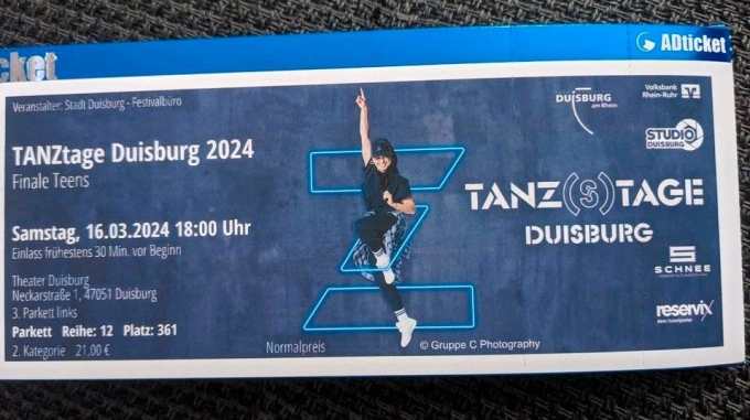 1 Karte für Tanztage Duisburg 2024 Finale Teens 16.03 um 18:00