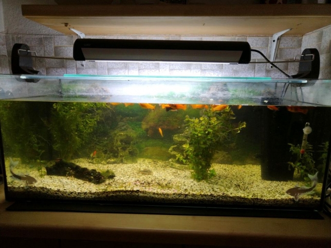 Das Aquarium ist in guten Zustand. Es sind ca. 50 Fische.