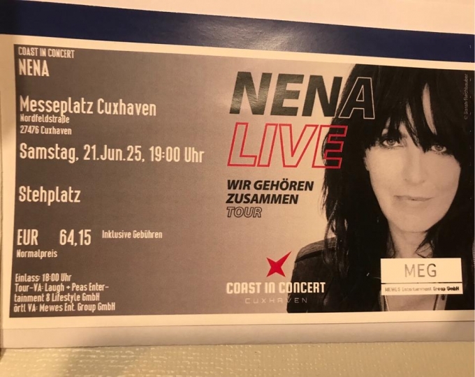 Hallo, ich verkaufe ein Nena Ticket für das Konzert am 21.06.2025 in Cuxhaven.