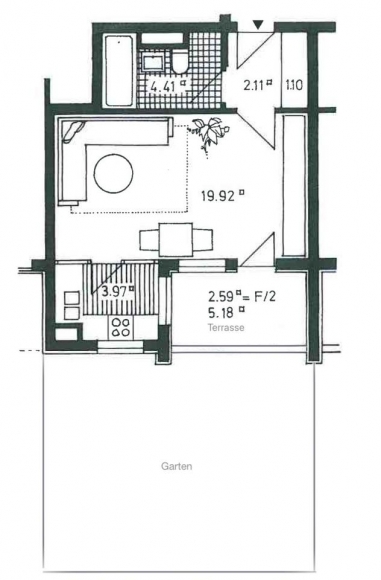 Frisch sanierte 1-Zimmer-Wohnung in grüner Umgebung mit dem eigener Terrasse & direkt anschließenden Gartenzugang zu verkaufen.