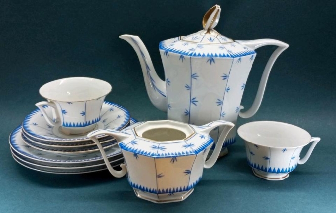 10 Zevener Porzellan Geschirr-Teile aus der Zeit des Art Deco, um 1925.