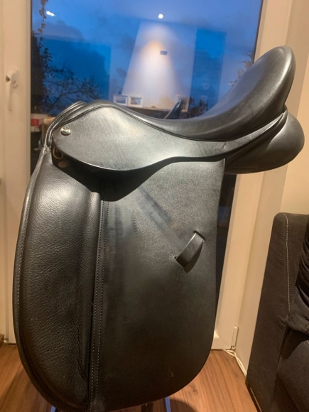 Biete hier einen wenig gebrauchten 16,5 Zoll Dressursattel der Marke Equus.