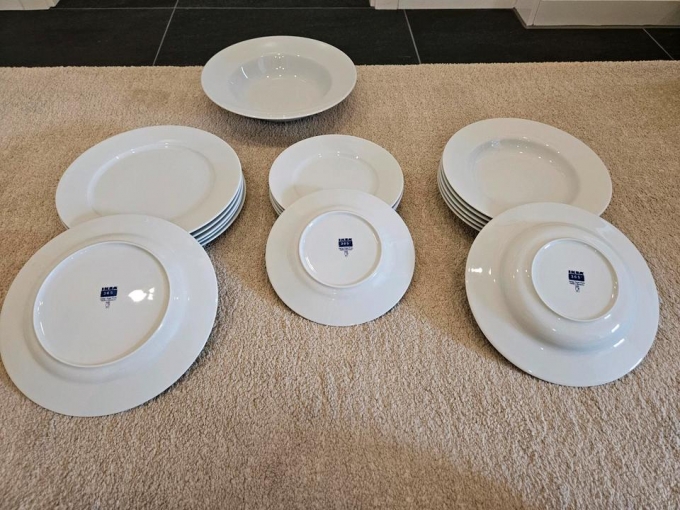 Verkaufen dieses Set mit 6 tiefen Tellern, 6 Frühstückstellern und 6 großen Tellern der Serie 365+ von Ikea.
