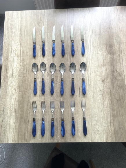 18 tlg. Esmeyer Besteck...Ess Besteck " Helena " blau marmoriert