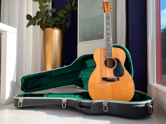 Ich biete hier eine seltene Martin J-40M von 1990, eine wunderschöne in Nazareth, USA handgefertigte vollmassive Westerngitarre mit Jumbo-Bauform und Hals-Korpusübergang am 14. Bund, herrlich gealterter Sitka-Fichtendecke, Boden/Zargen aus gleichmäßig gezeichnetem Ostindischen Palisander, einteiligem Mahagonihals, 3-Fach gebundenem Ebenholzgriffbrett mit Hexagon Perlmutt-Einlagen, edlem Ebenholzsteg mit Knocheneinlage, 43mm breitem Knochensattel und nachgerüstetem Highlander Piezo-Tonabnehmer in einem authentisch gealterten Natur Hochglanz Nitrocellulose-Finish mit 7-fachen Korpusbindings und Martin Goldmechaniken in einem sehr gut erhaltenen Zustand inkl. originalem Martin Hartschalenkoffer und prof. Setup mit 11er Elixir-Saiten.