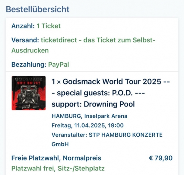 1x Godsmack Hamburg, 11.04.2025