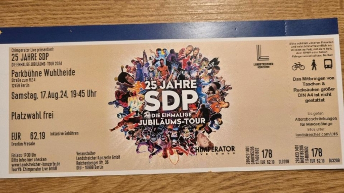 Ich habe noch ein Ticket für das SDP Konzert am 17.08 in der Wuhlheide übrig.