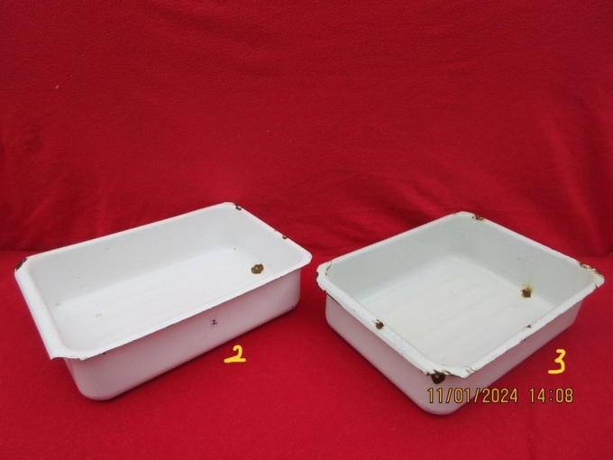 2 alte gleiche Emaille Schüsseln Töpfe Bräter "2 Schwerter"