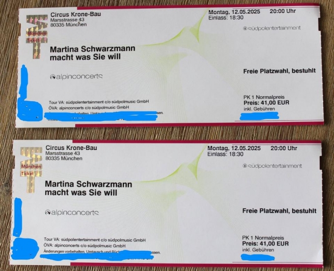 2 Eintrittskarten "Martina Schwarzmann" 12.05.25 München