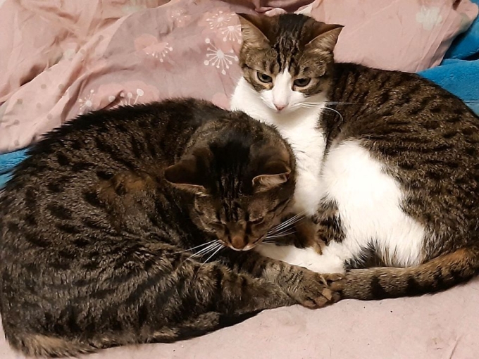 Zwei junge Katzen (circa 2 J.) Suchen gemeinsam ein Zuhause. Die beiden sind kastriert, geimpft, gechippt und tattowiert und in Besitz eines EU-Pass.