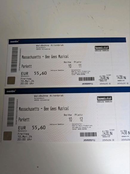 2 Karten Bee Gees Musical Massachusetts in Altenbrak Harz