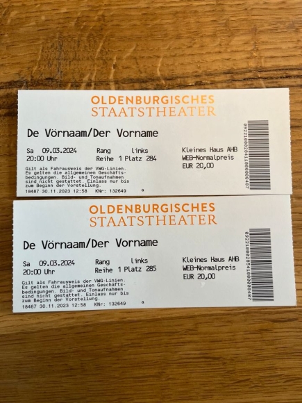 2 Karten für Der Vorname Niederdeutsches Theater